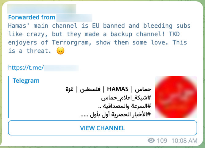 Image 1. Terrorgram post sharing a Hamas Telegram channel